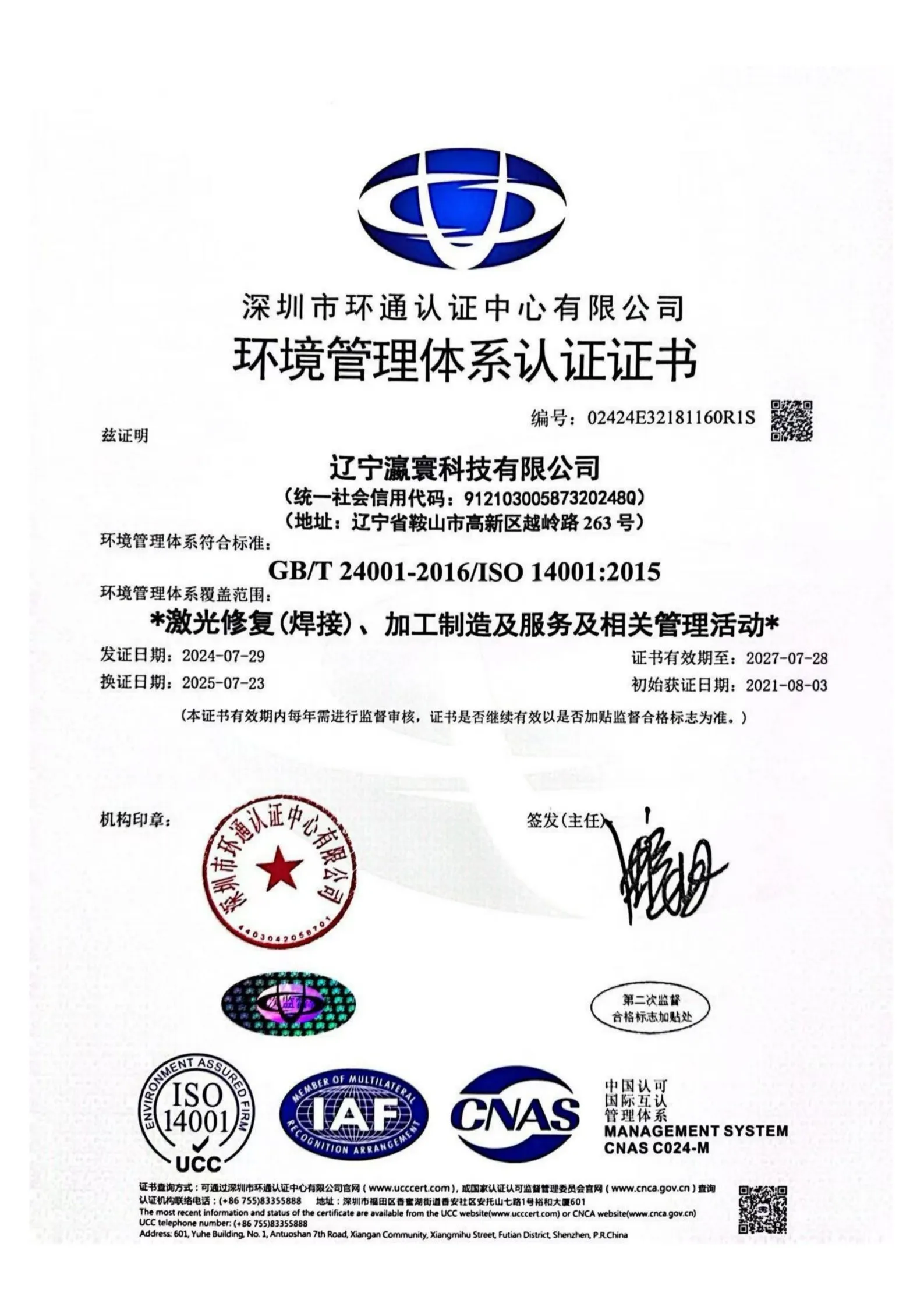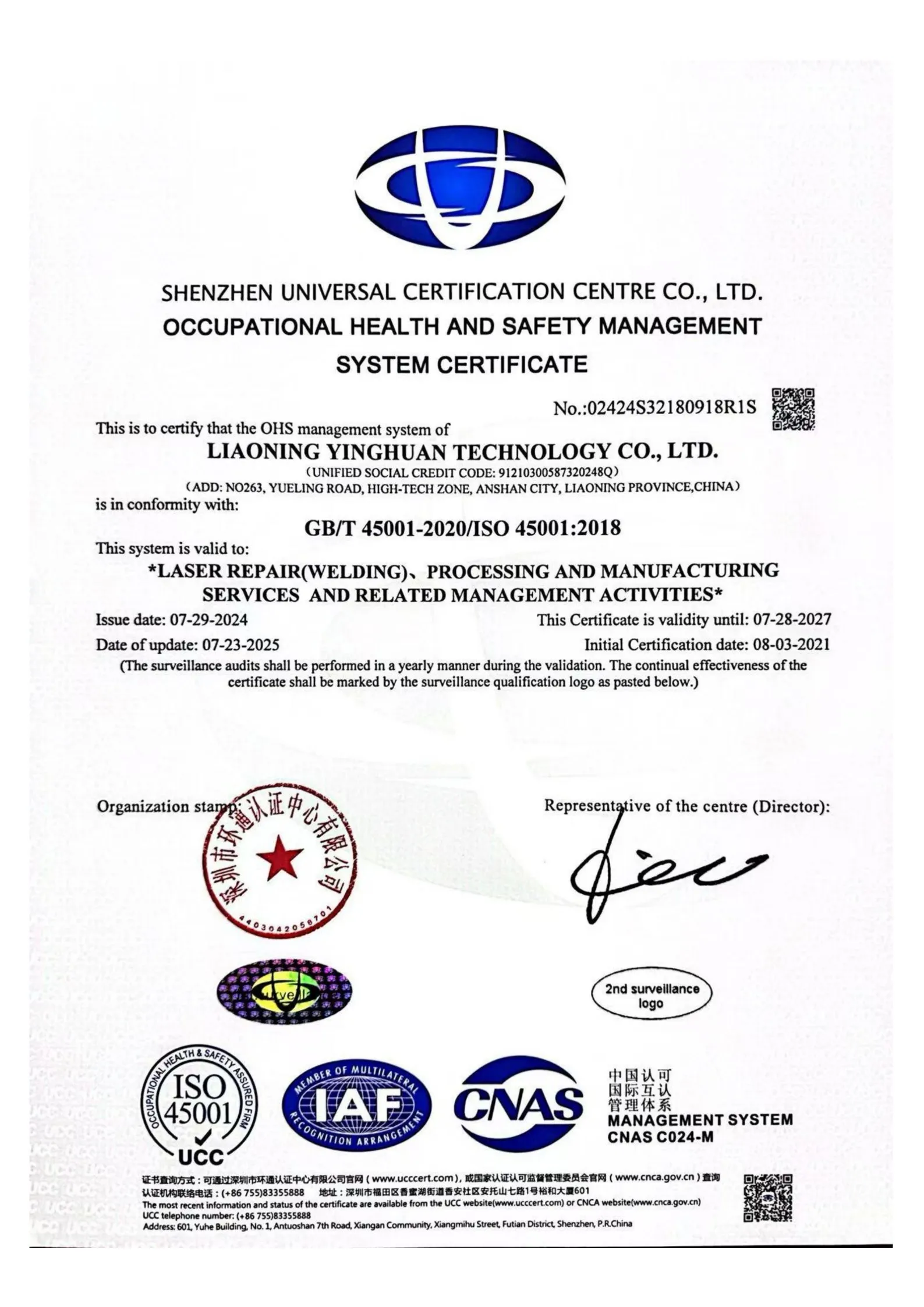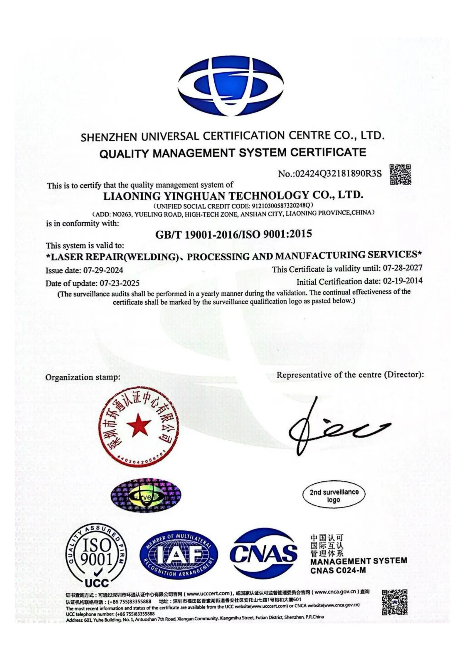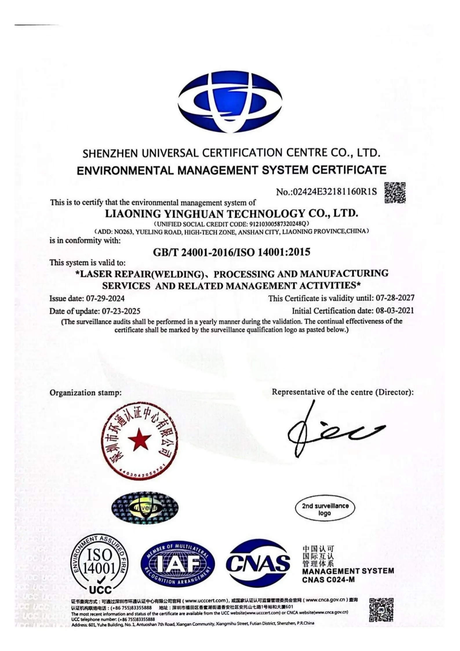 ООО Ляонин Инхуань Технологии было основано 4 января 2012 года с уставным капиталом в 10 миллионов юаней. Материнской компанией является АО «Пекин Дунфан Госинь Технологии». Компания специализируется на применении передовых технологий, таких как лазерная модификация поверхности, сварка, резка, восстановление металлургических запчастей, обработка, зеленое репроизводство и т.д., уделяя основное внимание производству, технологическим разработкам и услугам в областях износостойкости, антикоррозийной защиты, модификации поверхности и высокотехнологичного производства. Компания расположена в Северном парке лазерной промышленной зоны района Лишань города Аньшань, площадь производственных помещений составляет 1500 квадратных метров.